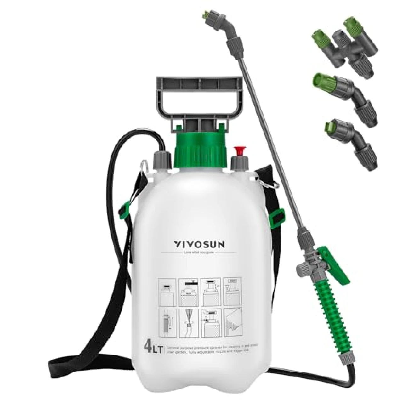 VIVOSUN 1 Gallon Pump Pressure Sprayer, 4L Pressurized Lawn & Garden Water Spray Bottle with 3 Water Nozzles, Adjustable Shoulder Strap, Pressure Relief Valve, for Plants and Cleaning
